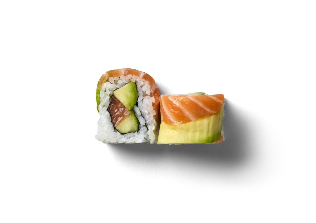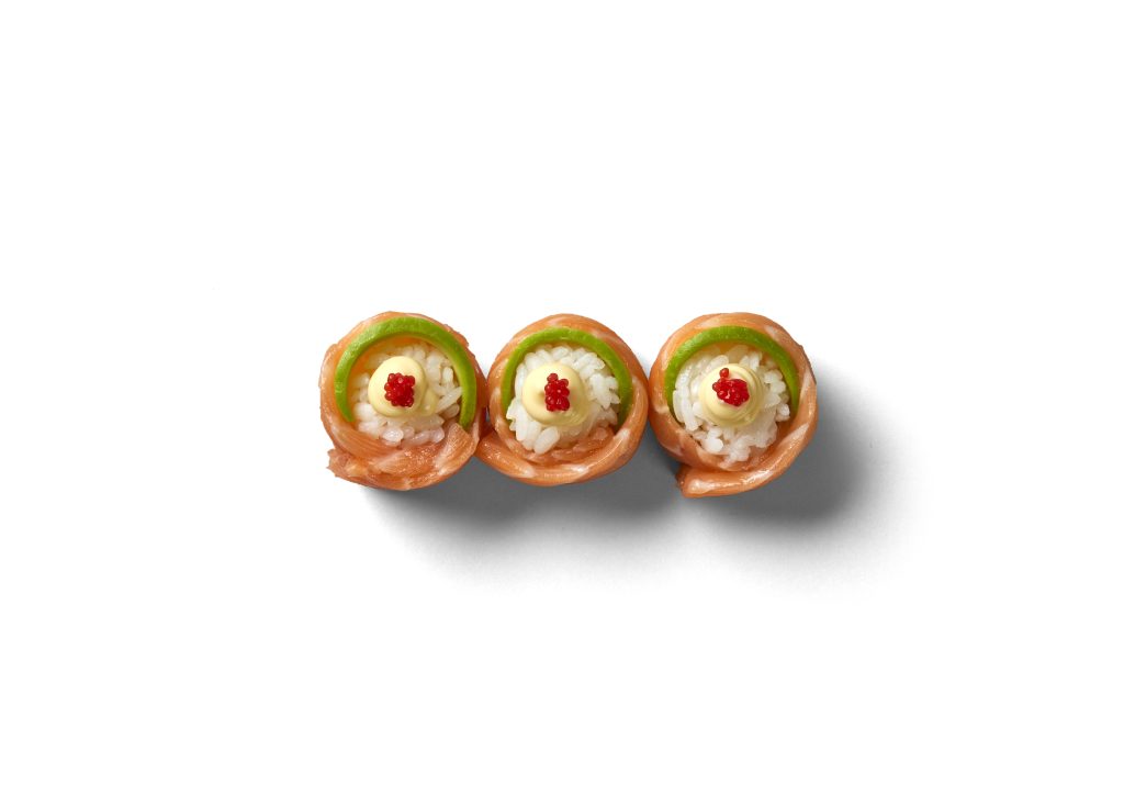 Lemon Salmon Roll: A fresh take on a favourite. This roll is available in four or eight pieces and layers salmon, avo, and cucumber with an extra hit of citrus zest. It’s the sushi you love with a little something extra.